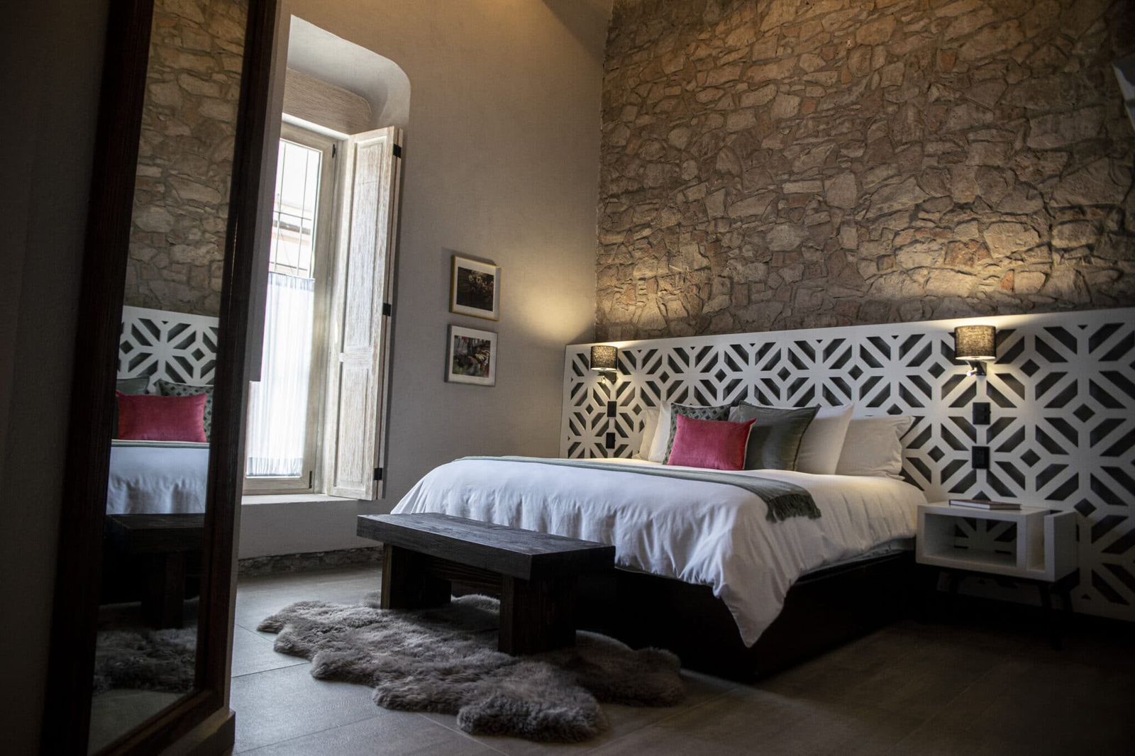 Con 8 habitaciones ubicadas en una casona y 5 en la otra, el hotel ofrece amenidades modernas como alberca térmica, terraza con vistas a las cúpulas de la ciudad, habitaciones con muebles de diseño queretano hechos a medida, ventanas termoacústicas, colchones y sábanas de alta calidad, además de un sistema de purificación de agua potable. Su concepto ecofriendly incluye energía solar y otras prácticas sustentables. Casa Once brinda una experiencia de confianza, seguridad y modernidad, con desayuno incluido que ofrece platillos tradicionales mexicanos.
